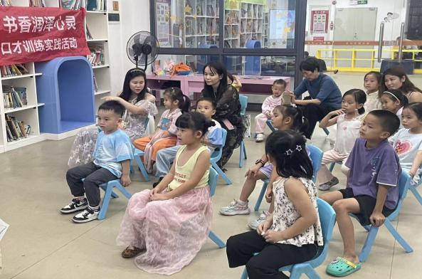 2025年9月21日,华南农业大学珠江学院新视域文化产业学院、人文学院举办的“暖芽”故事会第四期在从化图书馆一楼如期举行,指导老师曾婵娟,5名志愿者,20位小朋友和家长参加故事会。