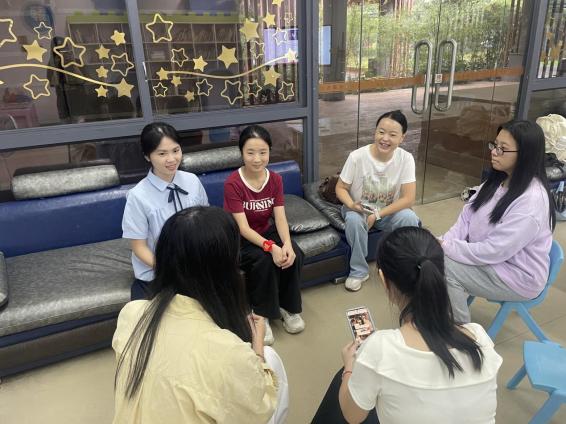 故事结束后,曾婵娟老师和志愿者们围坐在一起,开启了总结反思环节。曾老师从控场技巧、互动方式、故事导入和讲述速度等方面,和同学们一一探讨,指出大家的优点,也提出了可以改进的地方。“下次可以多设计几个小问题和小朋友互动”“讲述时可以再慢一点,给小朋友消化的时间”,大家认真记录,纷纷表示下次要做得更好,让故事里的道理更深入地走进孩子们心里。