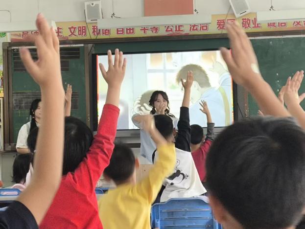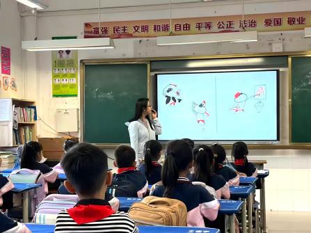 李尹婷老师讲故事情绪饱满,孩子们踊跃举手回答问题,热烈的互动让整个教室都洋溢着蓬勃的活力气息。